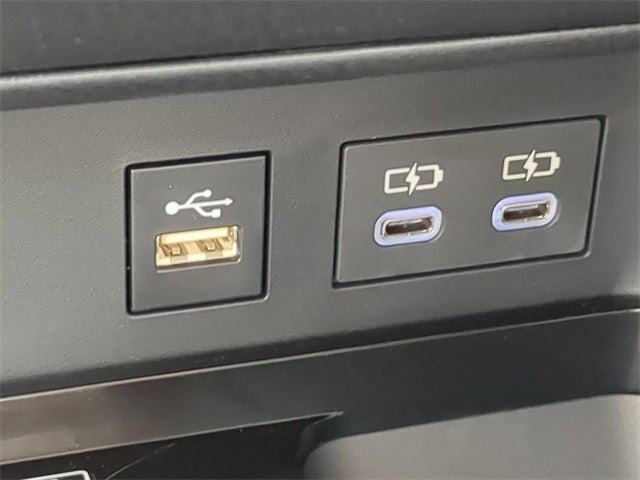 - Five USB ports: one USB-A media port and two USB-C charging ports up front, with one USB-A and one USB-C charging port in the rear